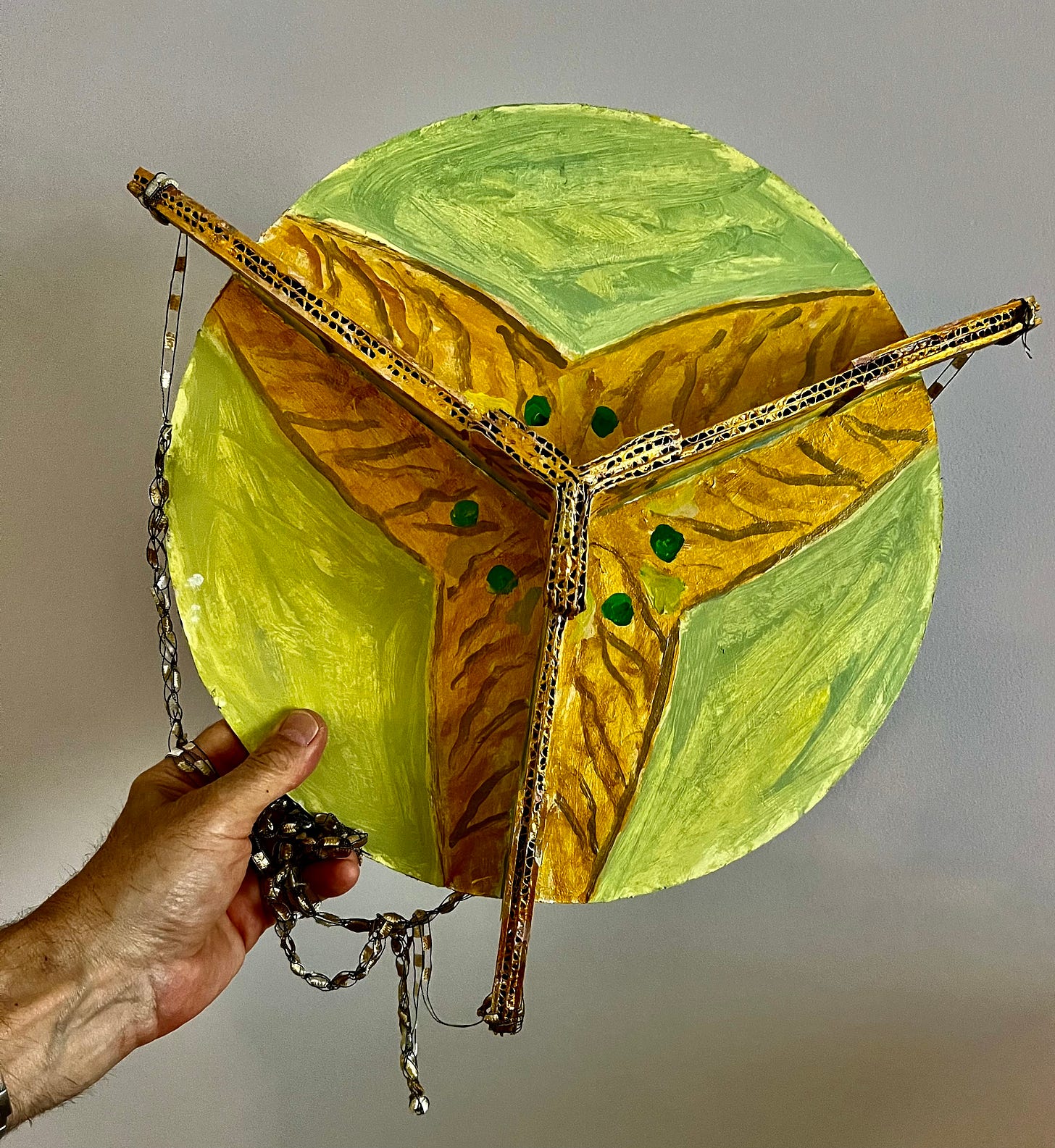 Side view of my 3-D cardboard model (in full scale) — envisioned for the Eternal Light (hanging in my kitchen).