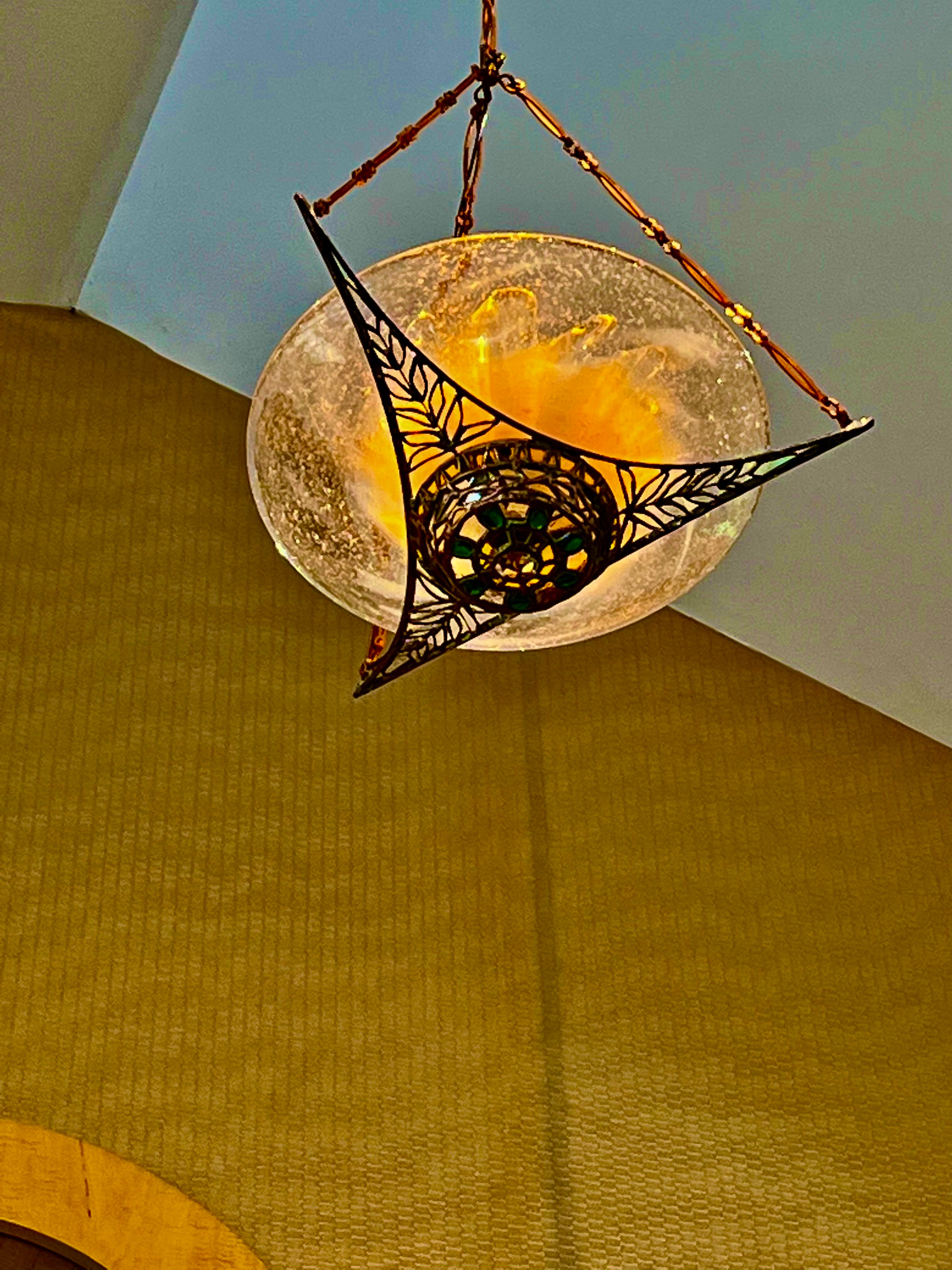 When I had gotten into this the first time around, I had searched the internet for Eternal Lights. The vast majority smacked of an engineered and manufactured quality. My vision was now a fine work of art hanging in this prominent place above the Holy Ark. I searched the internet again. This time, I searched for: “Jewish Artist and “Ner Tamid” (Hebrew for Eternal Light). To my surprise, I discovered a Jewish artist in Minnesota who specialized in hand-crafted Ner Tamid’s. The aesthetic of his work was in sync with what I was looking for. I sensed we could work together to create something quite exciting for the Shul.
